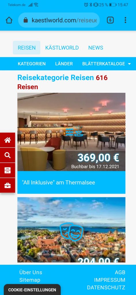 - Konzeption und Projektleitung Business Area www.kaestlworld.com/backend inkl. Online-Reisemanagement für Kunden